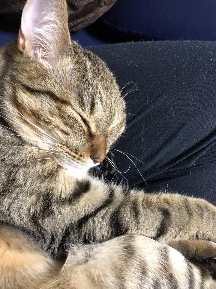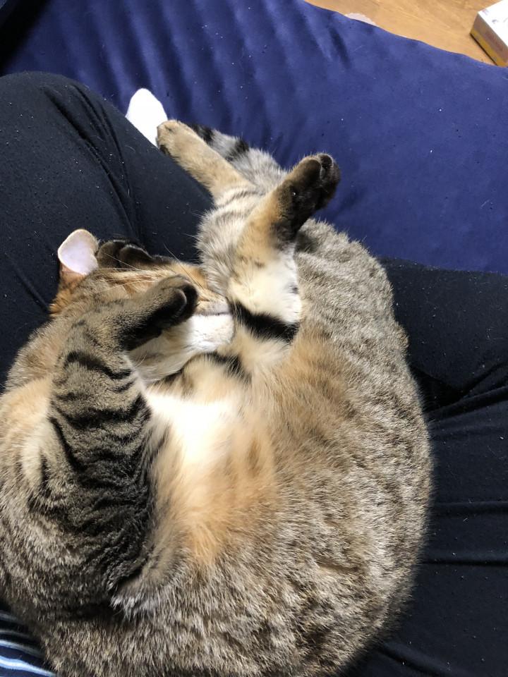 療養中、ずっとではありませんでしたが、寝ている自分に寄り添って寝てくれることが多々あったので。