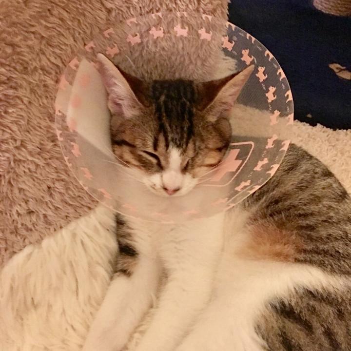 この仔猫は、数日前から、見かけてたけど、今、うちは、先住猫で、手一杯だから、どうしようかなって考えてたの。新入りのすずは、目の手術をしたばかりだし