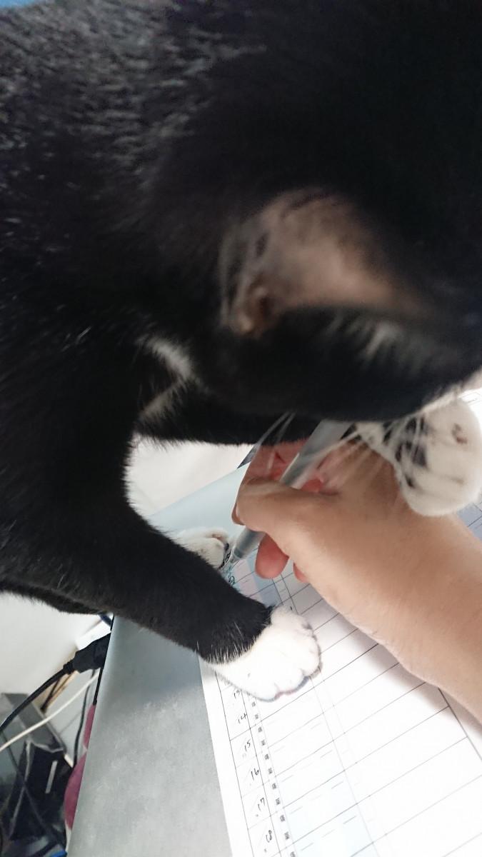行く前に頭痛記録を記入中に邪魔をするオトコ。。