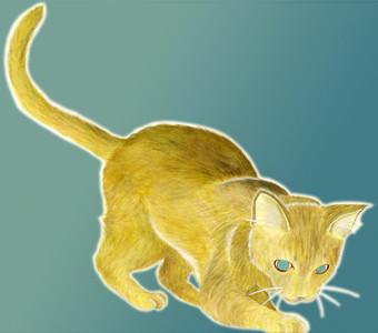 余談になりますが、今日の夕方から着彩を始めたところ、薄暗い部屋で下地を塗っていた所為で、思いも依らないほど真っ黄色なネコに.....