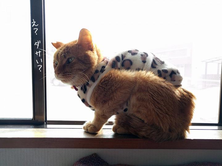 こおらを背負った亀のようにも見えるが、選りによって豹柄である。