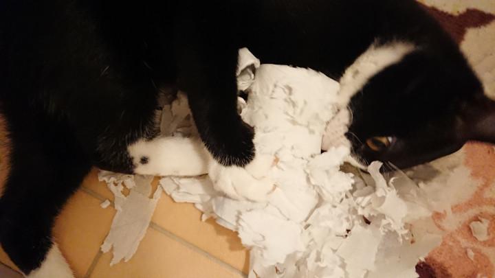 無惨なトイレットペーパーは床拭きにしました。(つд;*)