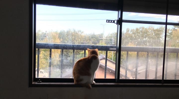 稲荷はどの部屋へも出入りするようになり、ときどき明け方外を見ています。