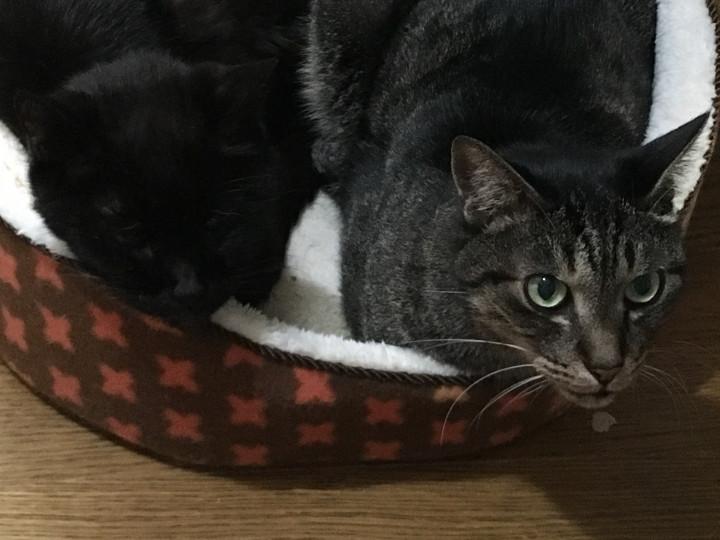 ミーが入っているベッドに後から入ったライ。ミーはなんとも思っていません。