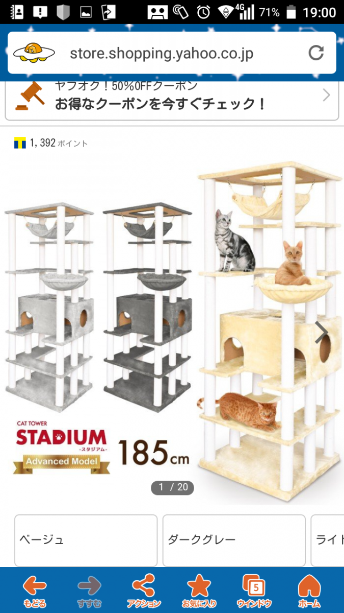 で、旦那には、ずーーっと前から欲しかった、お高いキャットタワーを、今回は買わせてくれ❗とお願い済み。