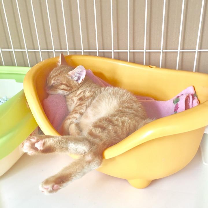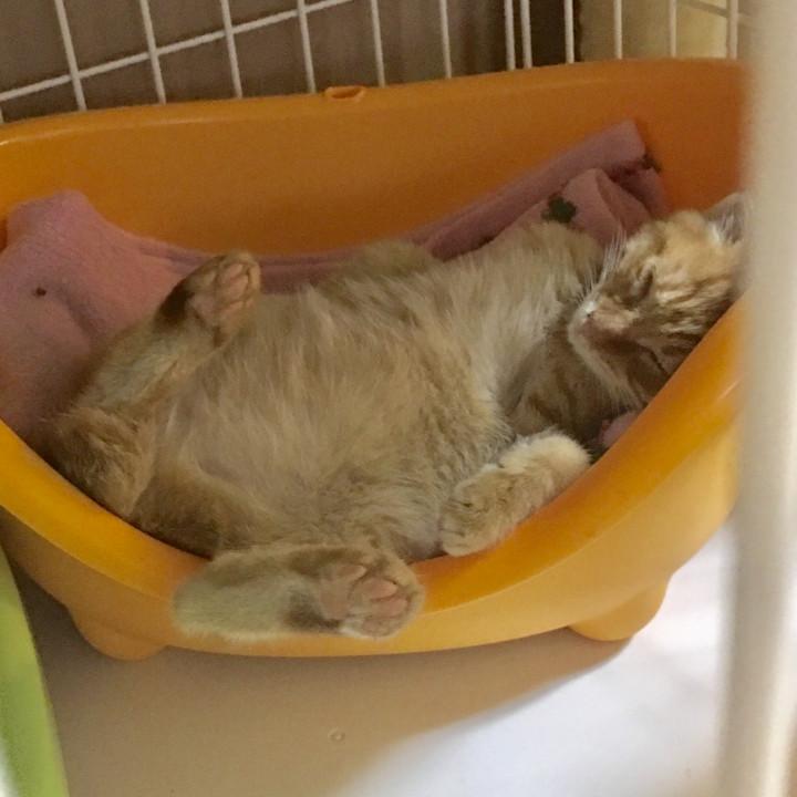 ゲージの中では、お腹出して、おっさんじゃん😅