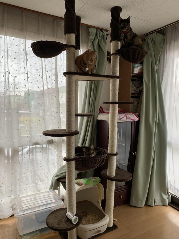 ママが買ってくれた新しいキャットタワー皆に人気です