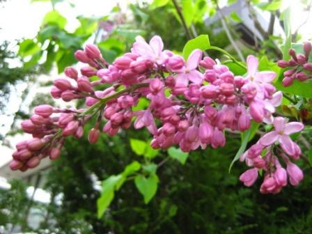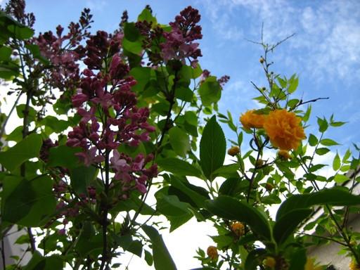 家のライラックはまだ満開ではないのですが今朝の様子を載せてみます。横は、山吹です。