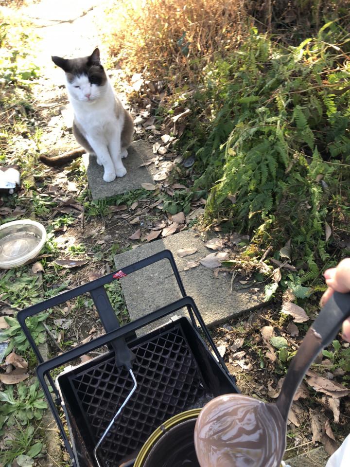 やはりこの姿は猫が遠めに見ても、気になるのだろう。