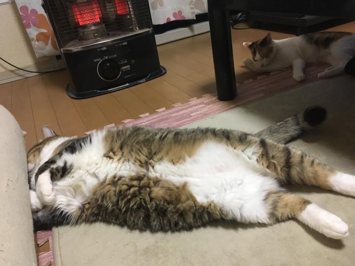 部屋内でヌクヌクと野生を忘れてるにゃんズ…