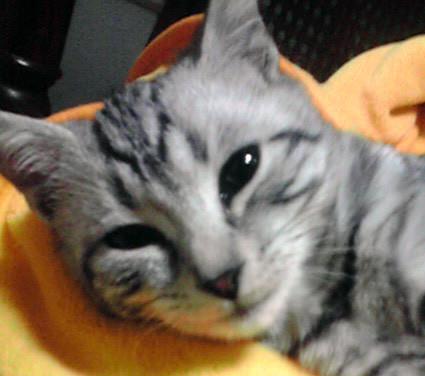 夜になると嬉しそうに私の顔をみて笑って寝ていて、まぁ鳴かなくてもココに居てくれるだけで良いか~と思い始めた頃「ミャン」子猫らしい可愛い声で鳴いてくれました。