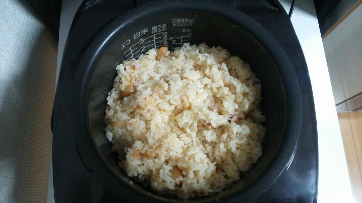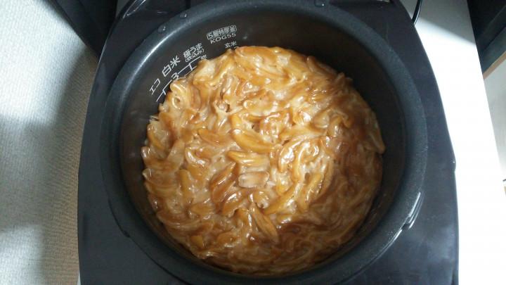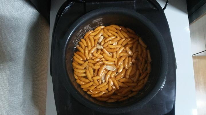 お水加減は白米の時と一緒で、お米1合に対して柿ピー1袋