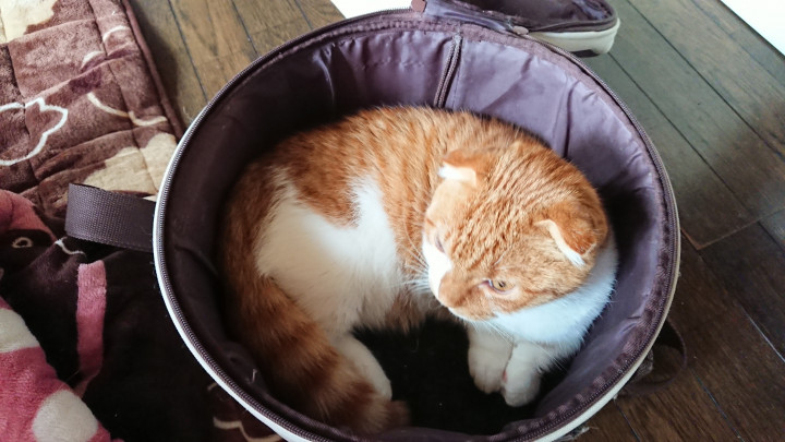 キャリーバッグに入り 準備万端なくぅちゃん。