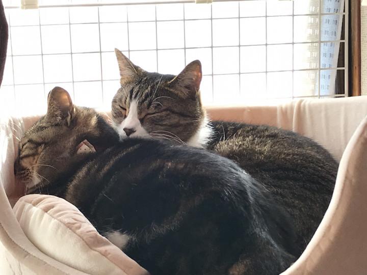珍しくニコにぃとムゥちゃんが一緒にねんねしてた!