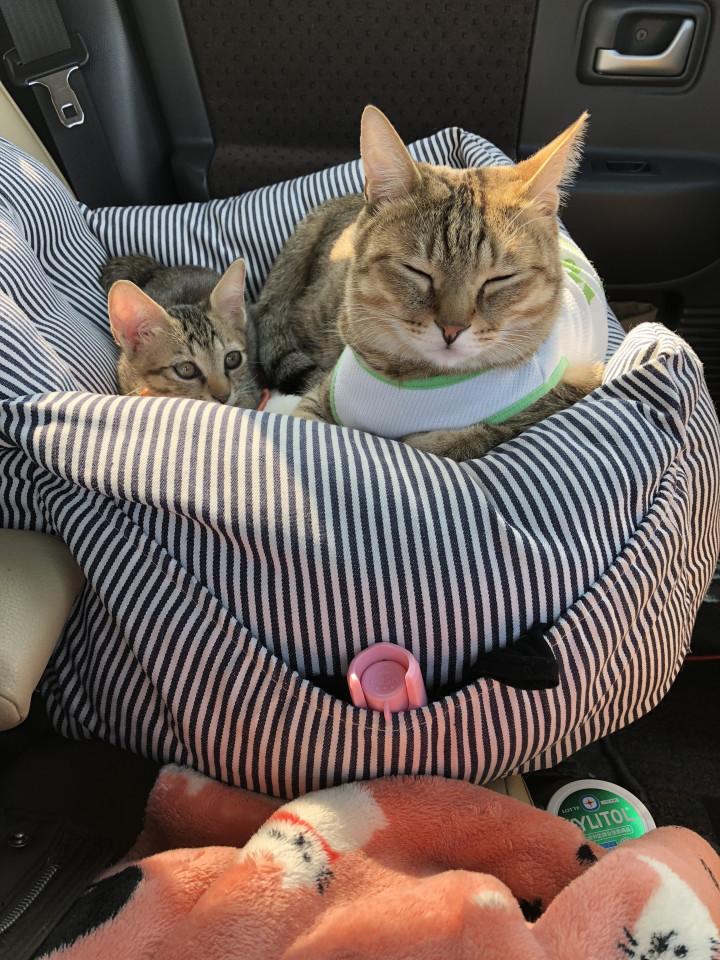 この子も成猫で保護して里親さん探してたんですが、来て間なしに手術などして、うちで見ることに。車が大好きな旅好きにゃんこ。