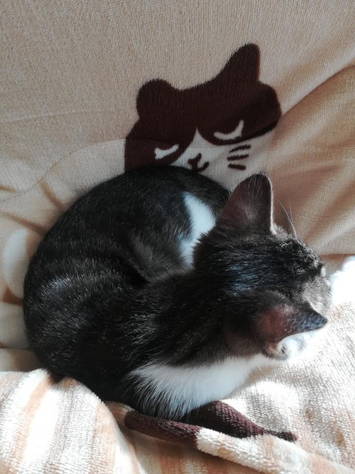 おはようございます、すずちゃんきて早一ヶ月❗あっという間というより長くも感じた☺️軽かった体重もなんグラムかはわからないけどずっしり重い❤️最初は割れ物扱いしたし、子猫を、育てるの悩んだりもしました、特にあまがみ🐱今も😵早くみーこみたいな成猫になってほしいと思ったし正直育てるの無理かな⁉️とも自分に偽ってました😢でもようやくすずちゃんにも慣れてきたし寝てるときは可愛いなあ😅とか(笑)とにかく成長楽しみに過ごして行きます‼️