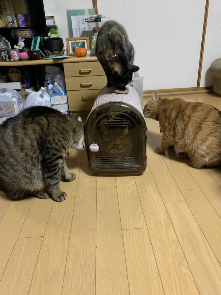 まだキャリア検査してないのでキャリー越しに(^ω^;);););)
