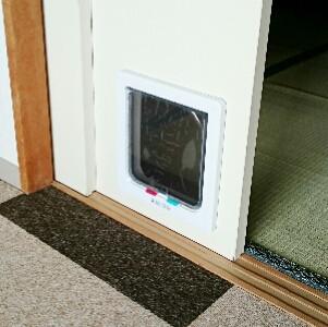 リビングと和室(寝室)を隔てる引戸には、もちろんキャットドア。