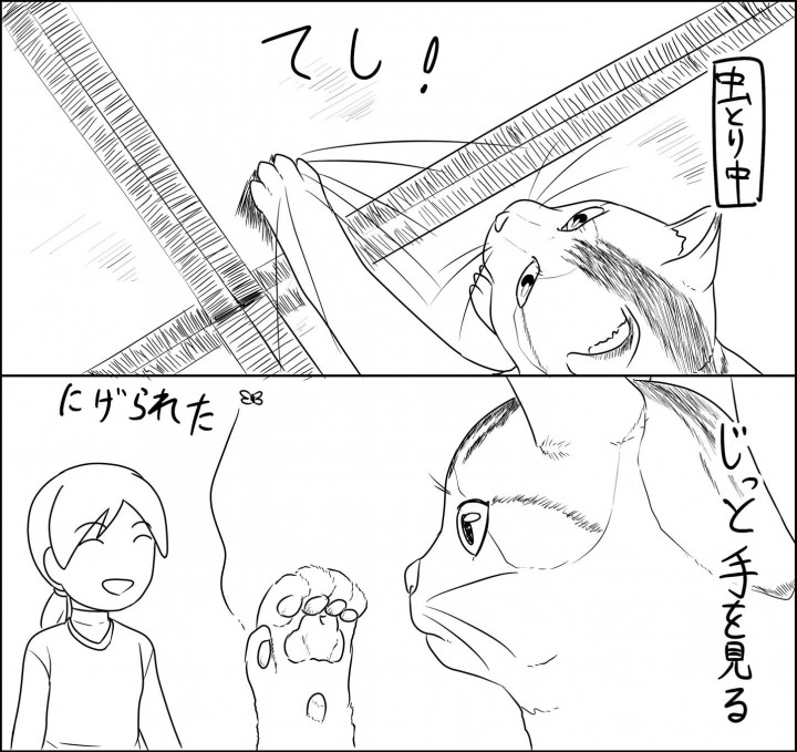 1、肉球パンチで虫取り。逃げられてもしばらく見てますw
