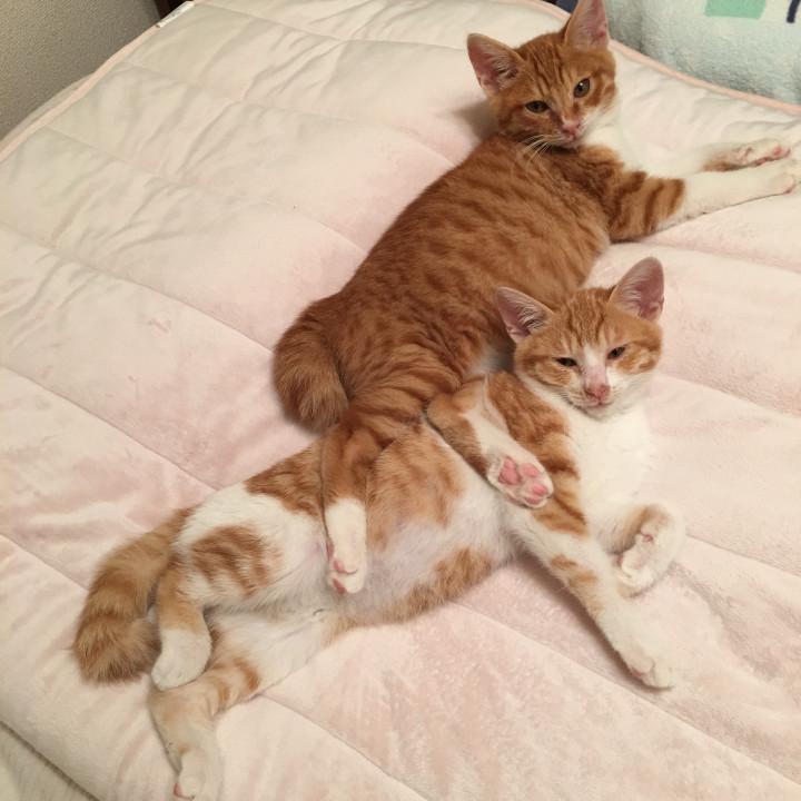 何にでも直ぐに興味を持って、お腹をグリグリすると、こてんってたおれる、ちゃちゃ。だんごにいつも羽交い締めにあって、悲鳴あげてたね。これからも、ずっと一緒にいられるね。そのうち、ちゃちゃの方がおっきくなると思う、男の子だから。