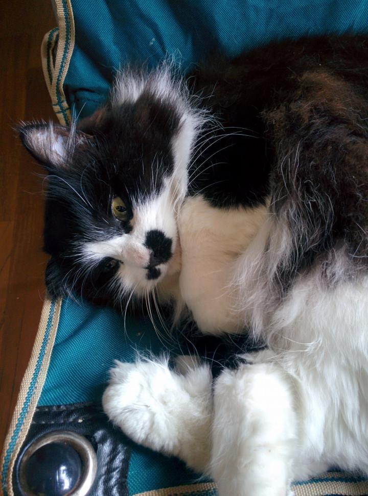 ゴハンを食べると、そそくさと寝所に戻り、私の布団の真ん中で丸くなる姐さん。