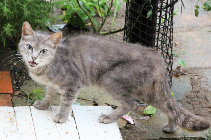痩せているけれど、もとはサバトラの模様が薄くて