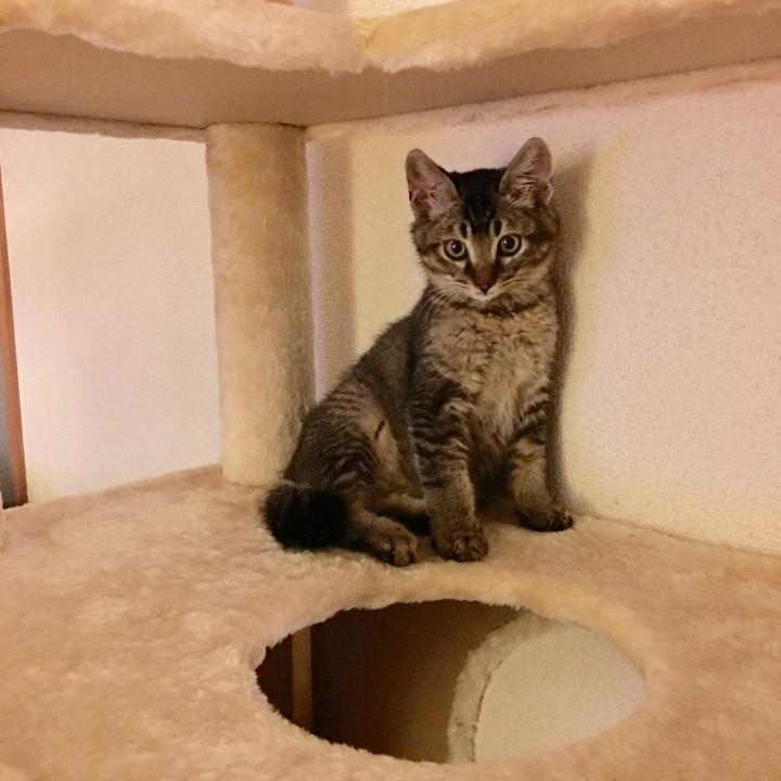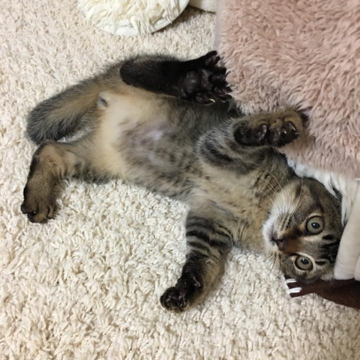 まだ、人は信用してないけど、オモチャで遊ぶのも覚えたし、キャットタワーも登れるし、毎朝、ご飯の時は、ご飯を楽しみにして、テーブルの脚の横から、私を見上げてる😅それだけでも、進歩だよね。もう、ちょい、なんだけどな〜ゆっくりでいっか〜(^^)