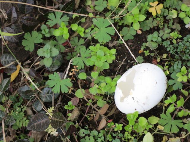 庭に卵が落ちてました。