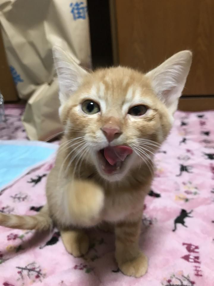 片付けが終わり、3にゃんをケージに戻そうとした時、イチさんの顔を見たら何だか違和感…左目が赤くなっていました。