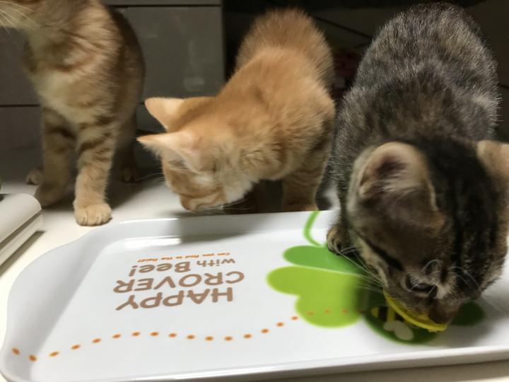 パウチを分けた時のスプーンをペロペロ。キィちゃんは食いしん坊でちょっと意地汚いw