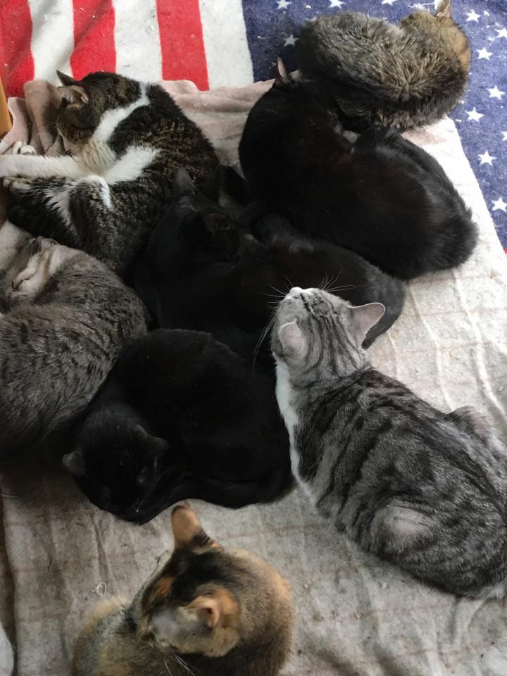 急に冬らしくなり、猫たちだけでヌクヌクです。