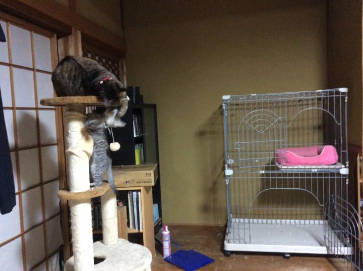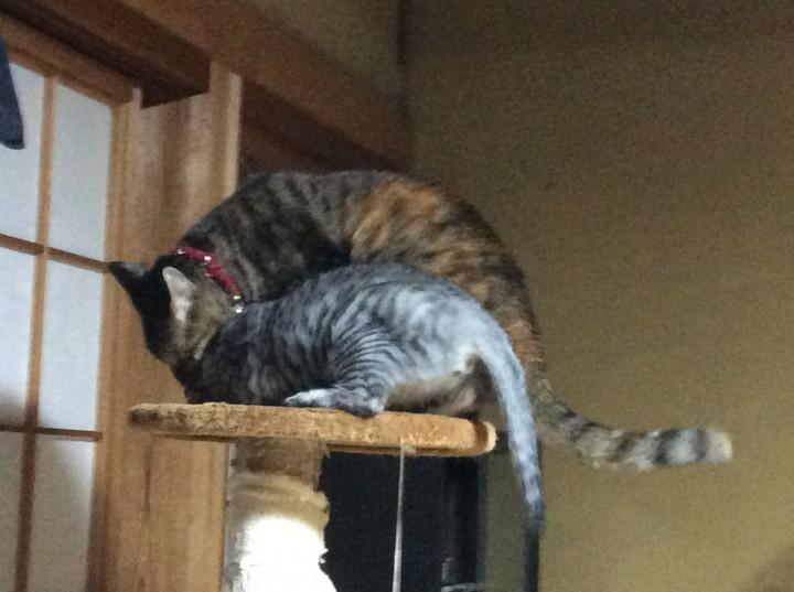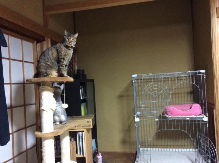 キャットタワーの上で