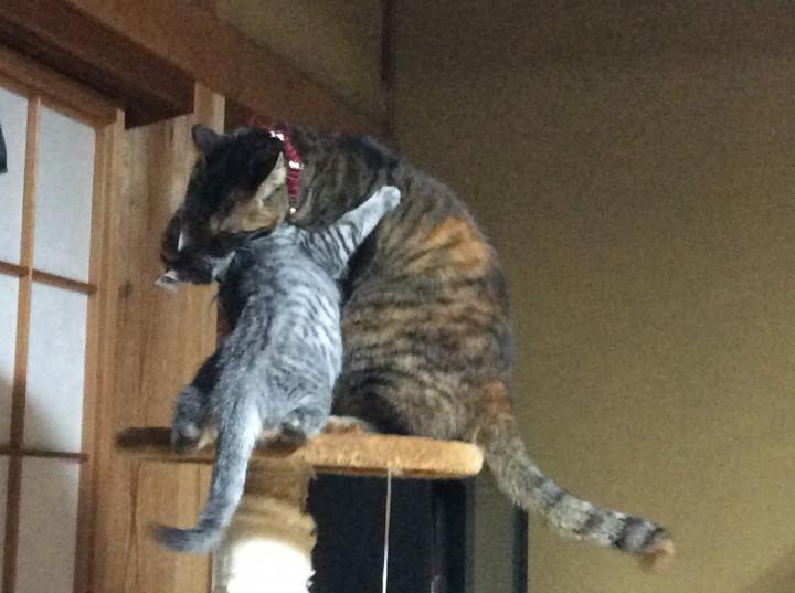 皆にゃんに、、ちょっかいしてきます。