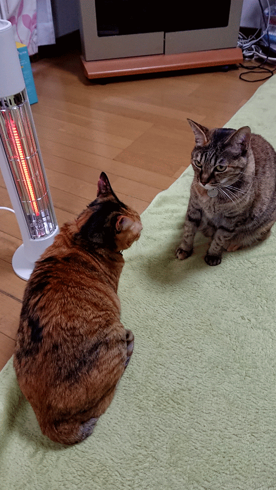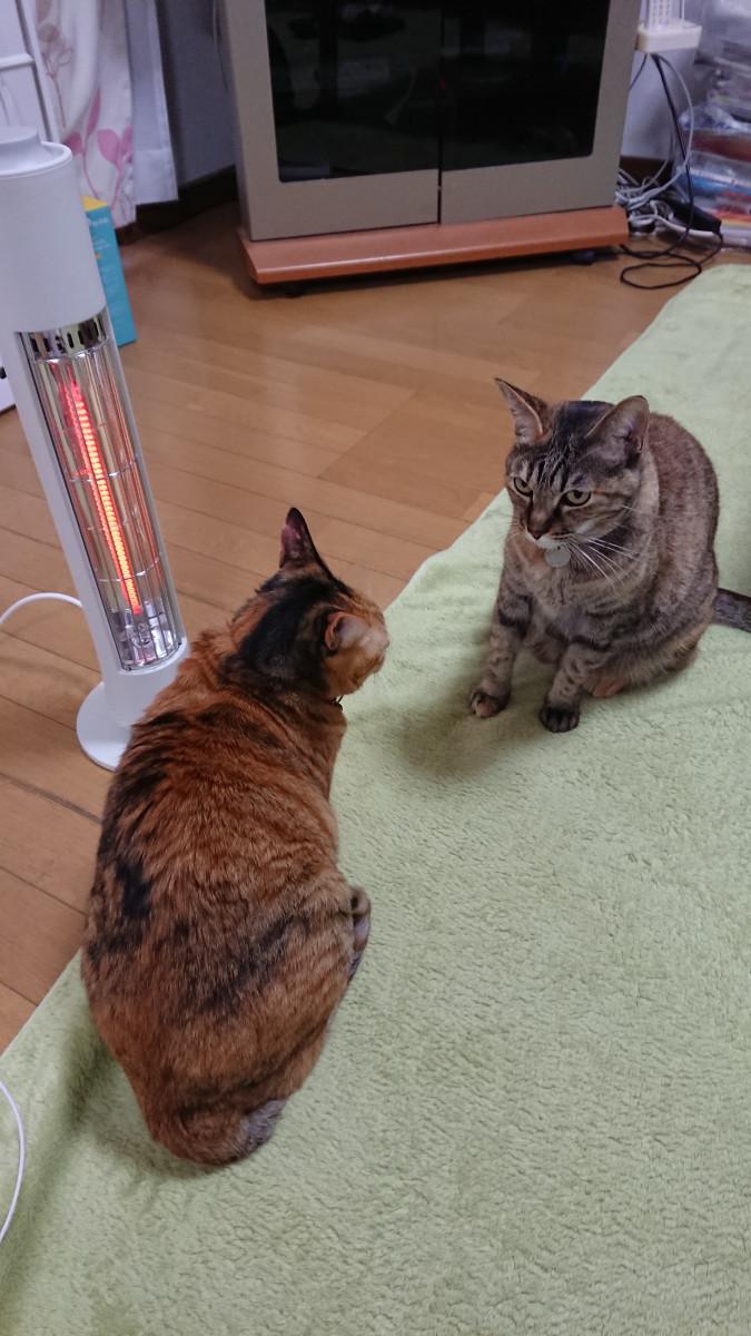 さて、我が家の家猫さん達、この前から電気ストーブをつけていますが…