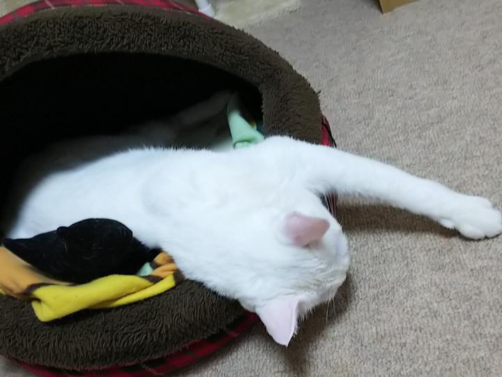 「スマホ見た?!タケオくん、昨日凄い格好で寝ててんで!」