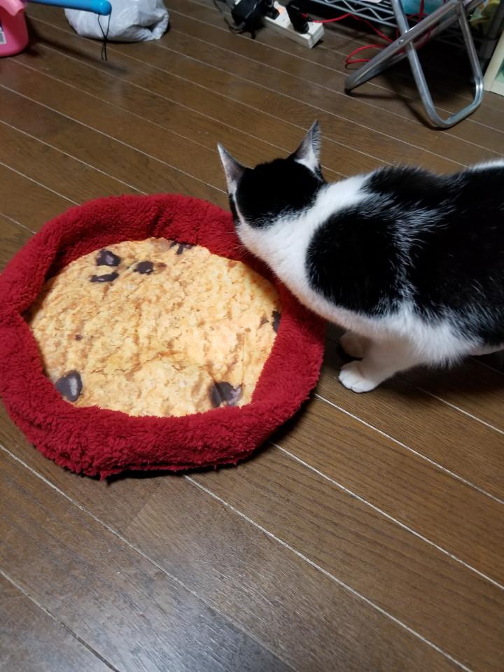 おはぎの検品にきなこも加わり、匂いを嗅いだりツンツンしたり…