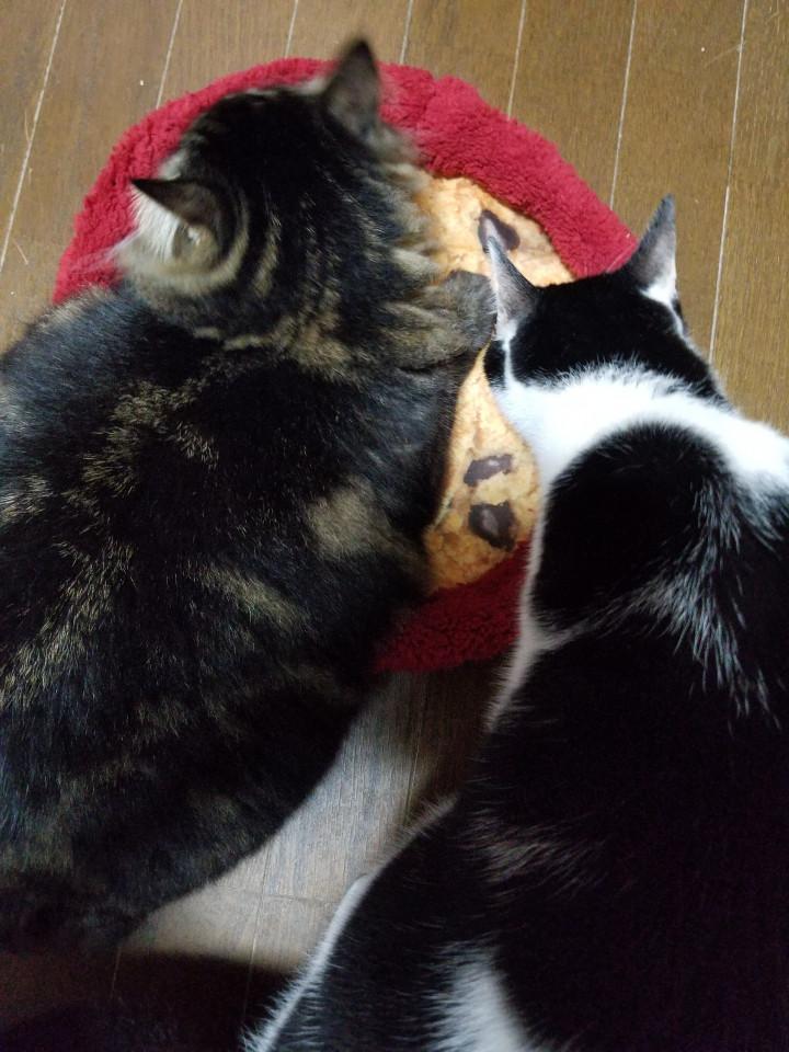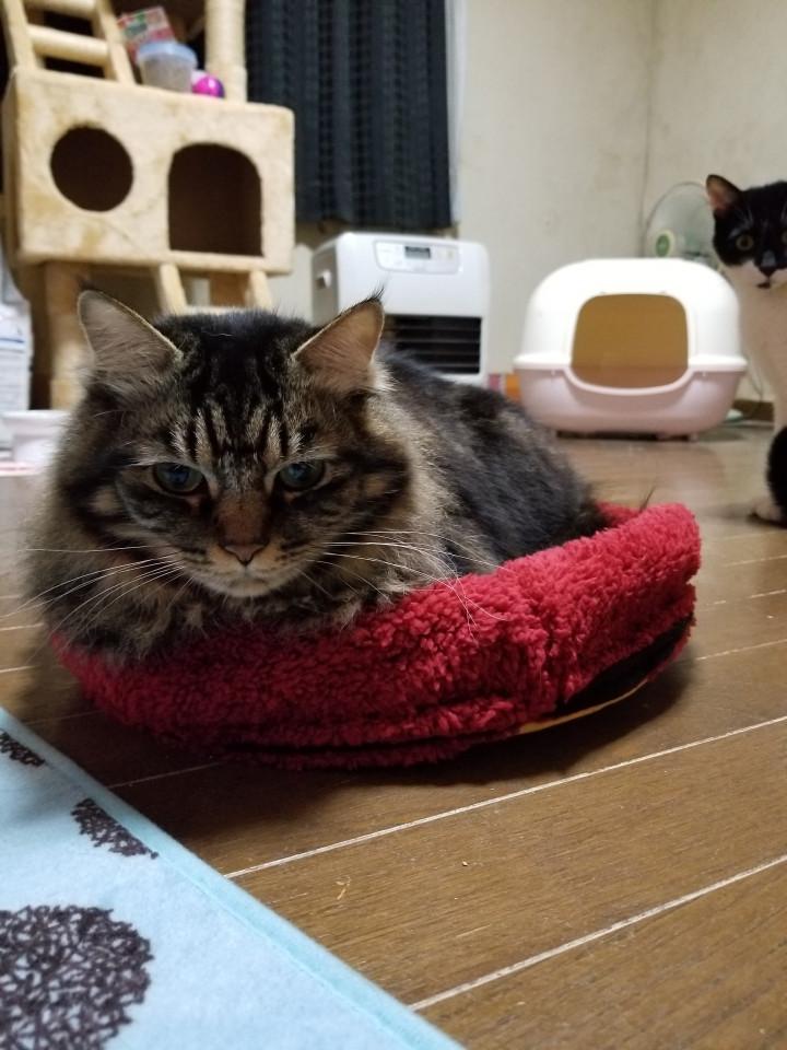 おはぎが座ろうとしたらきなこに殴られ、ムックはきなこの物に❗