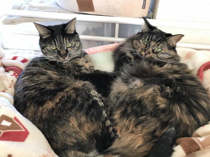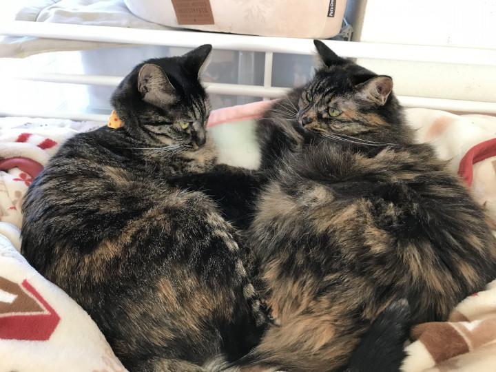 それに比べて、妹のモモ子ちゃんはモッフモフで暖かそうなうえ、最近はお腹がぷよぷよで…随分蓄えていらっしゃるのよね〜(なんと!お兄にゃんよりも重たかった!)