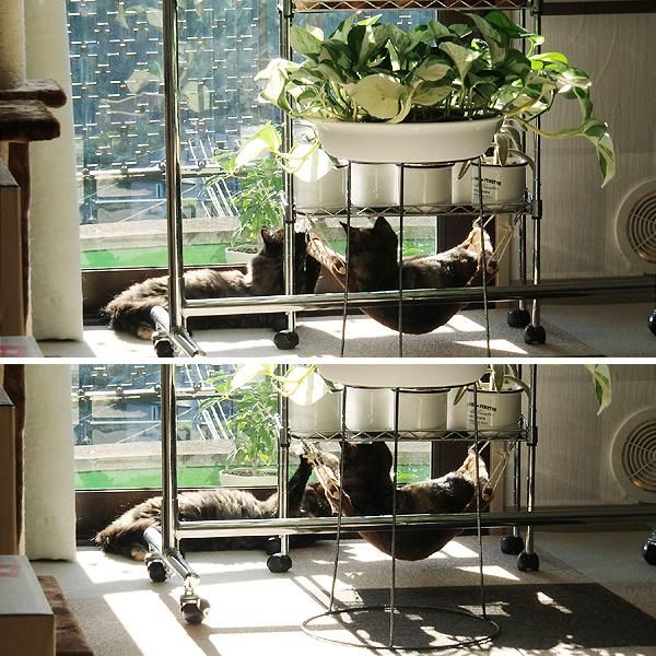 メルは来たばかりの頃、日中ほぼ猫ロフトにいて、太陽光を浴びなかったので「ビタミンD3が生成されないよ! 骨が弱くなっちゃうよ!」と心配しましたが、今は午前中はリビングにいることが多くなりました。ちょっと安心。