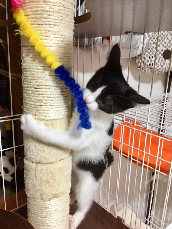 爪研ぎタワーへの一気登り&誘導する時のオモチャを咥えて下まで降りる🎵