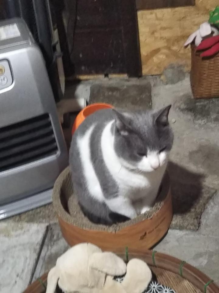 隠れて見ていると、ちゃんと降りてご飯食べる、行くと元の場所でじっとしてる