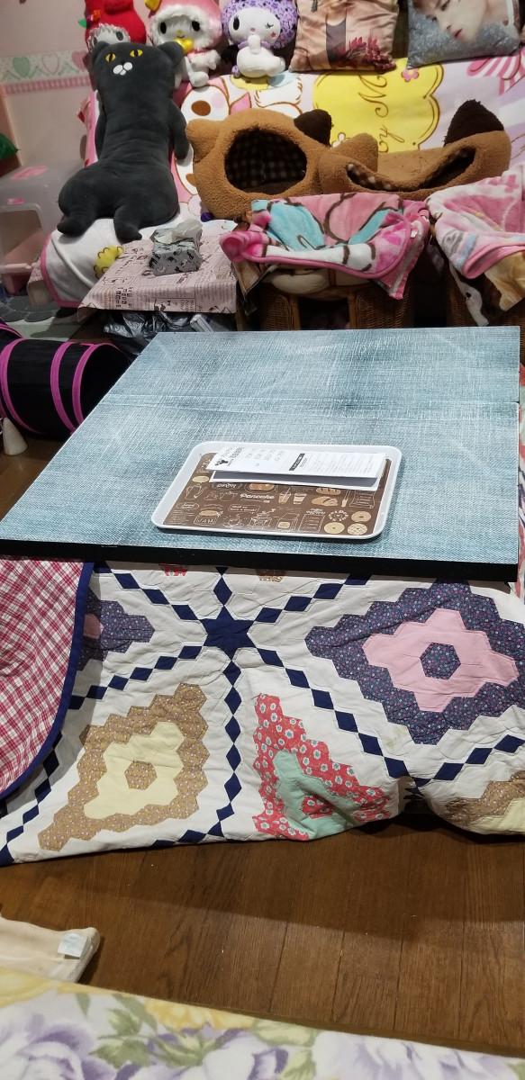天板はリビングのとチェンジして古い方を設置しましたがこたつは新しい方をmuの部屋に置きました。