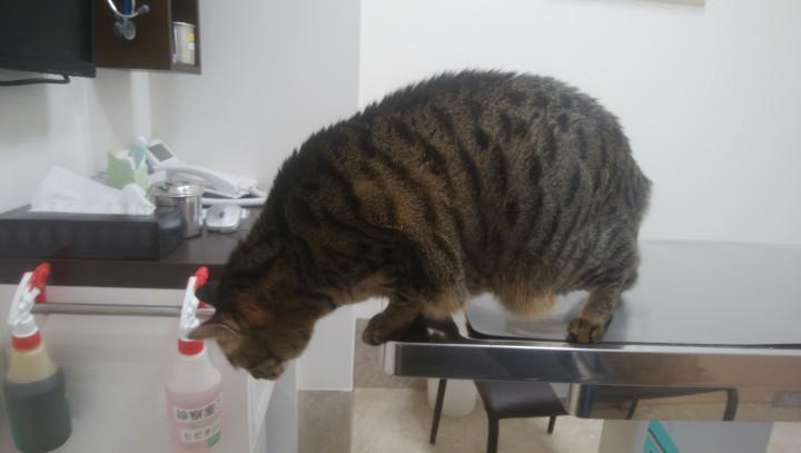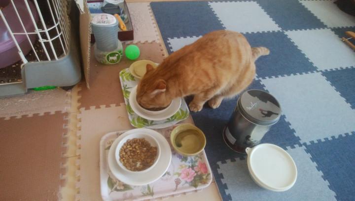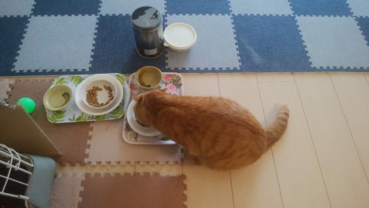 帰ってからご飯をガツガツ食べるレオ。珍しい光景です。