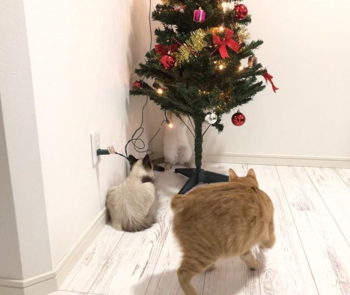実はツリーをガブガブ噛んでいるだけです