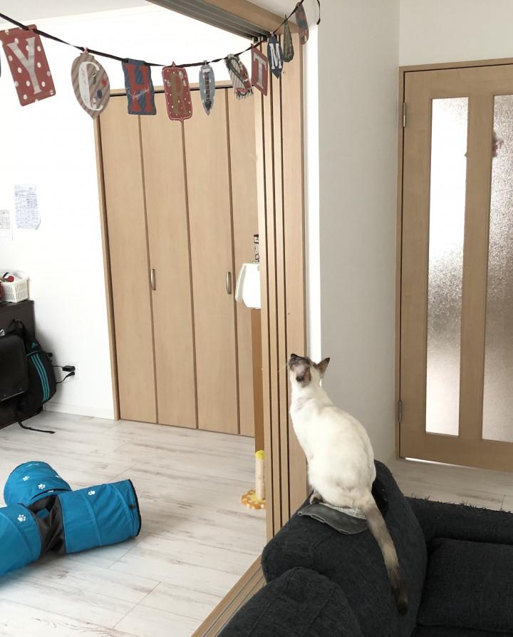 奥で美鈴も飾り付けをお手伝い🐱
