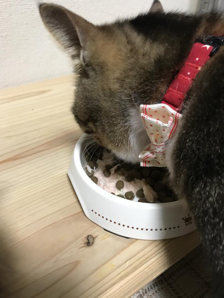 みんにゃまぐろの缶詰よりも食いつきが良い気がします。やっぱりお肉の方が好きなのかな〜?