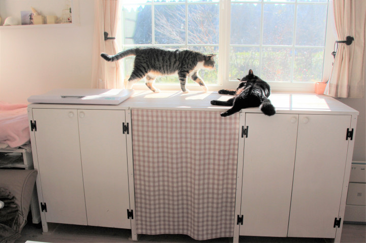 左隅には、以前書いた猫ベッド台