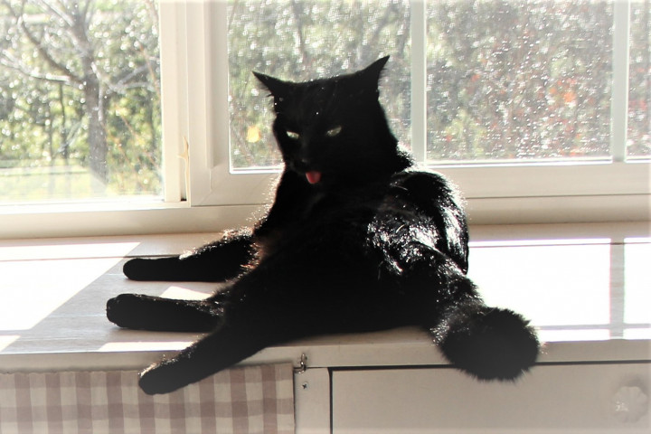 毛づくろい中の黒猫キンちゃん♪