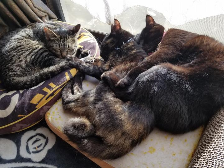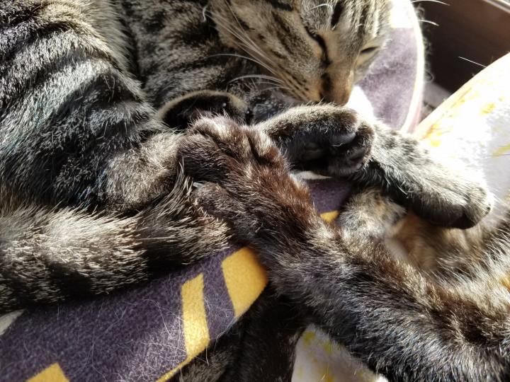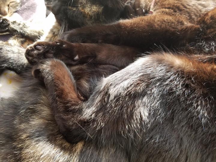 キラリは前肢を、そっとノアの後ろ肢に🐾