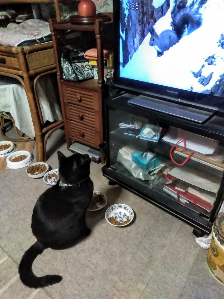 あ〜あ、残念‼友達になりたかったのに。諦めきれずに、エサそっちのけで見つめ続けています。